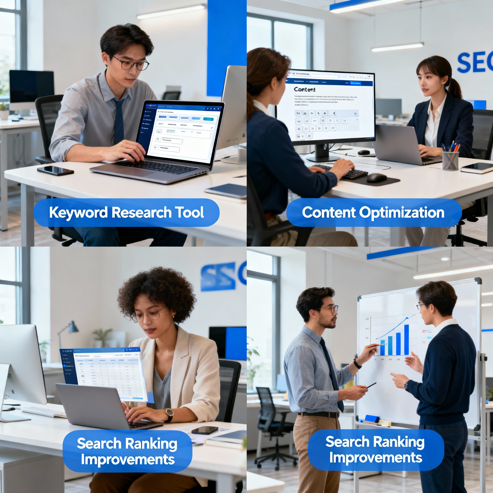 Optimize title tags, meta descriptions, header structure, and content with targeted keywords to improve relevancy and click-through rates.